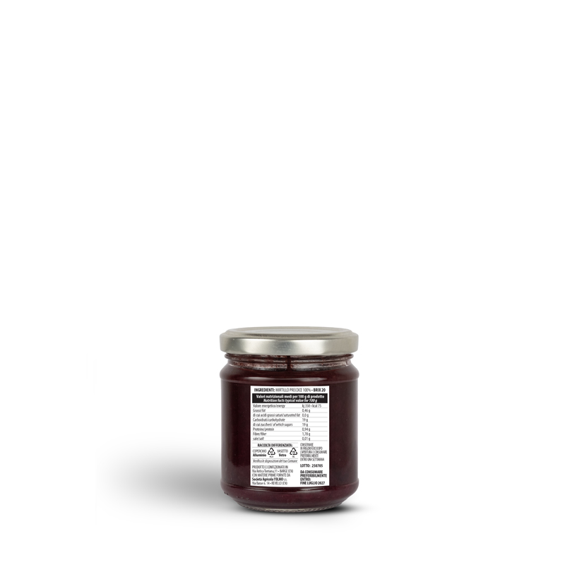 The Chandler variety is one of the most prized, with a fresh and slightly tart aroma. From our fields comes a handcrafted jam with no added sugar, made from fresh hand-picked blueberries and carefully prepared to preserve all their natural richness.